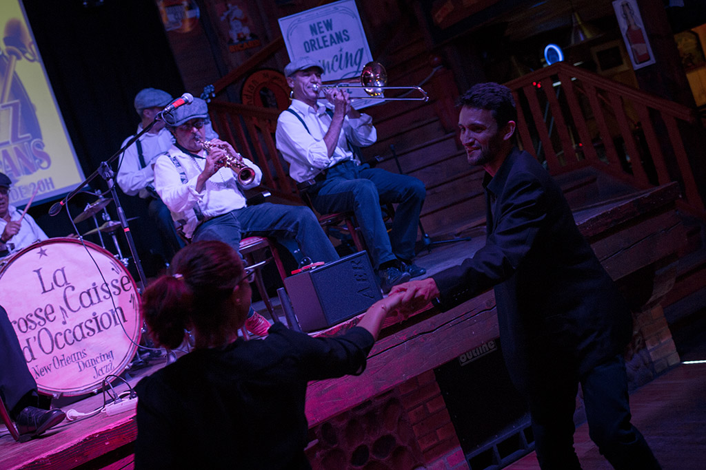 Comme d’habitude, la Grosse Caisse d’Occasion nous a fait danser sur leur rythme de Jazz New Orleans alors qu’Alex et Muriel ont proposé une initiation de Charleston à l’entracte du groupe !
